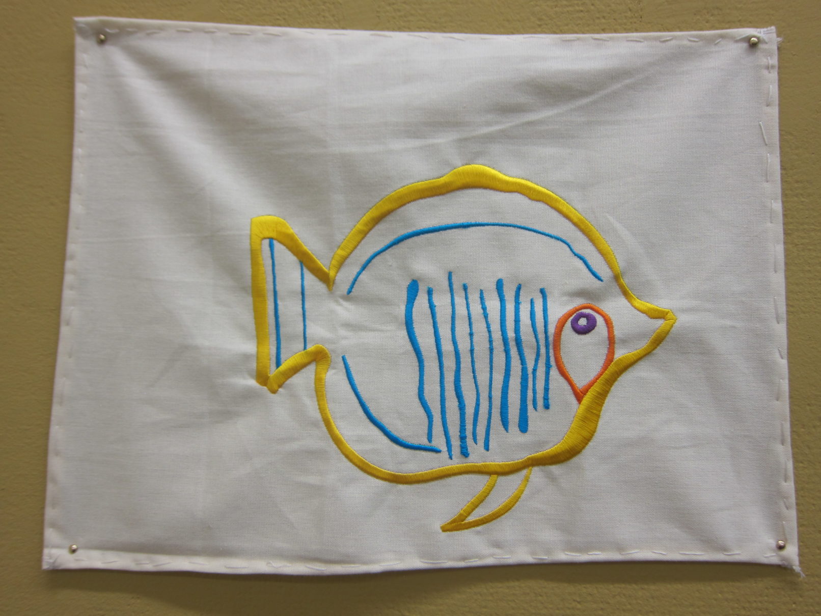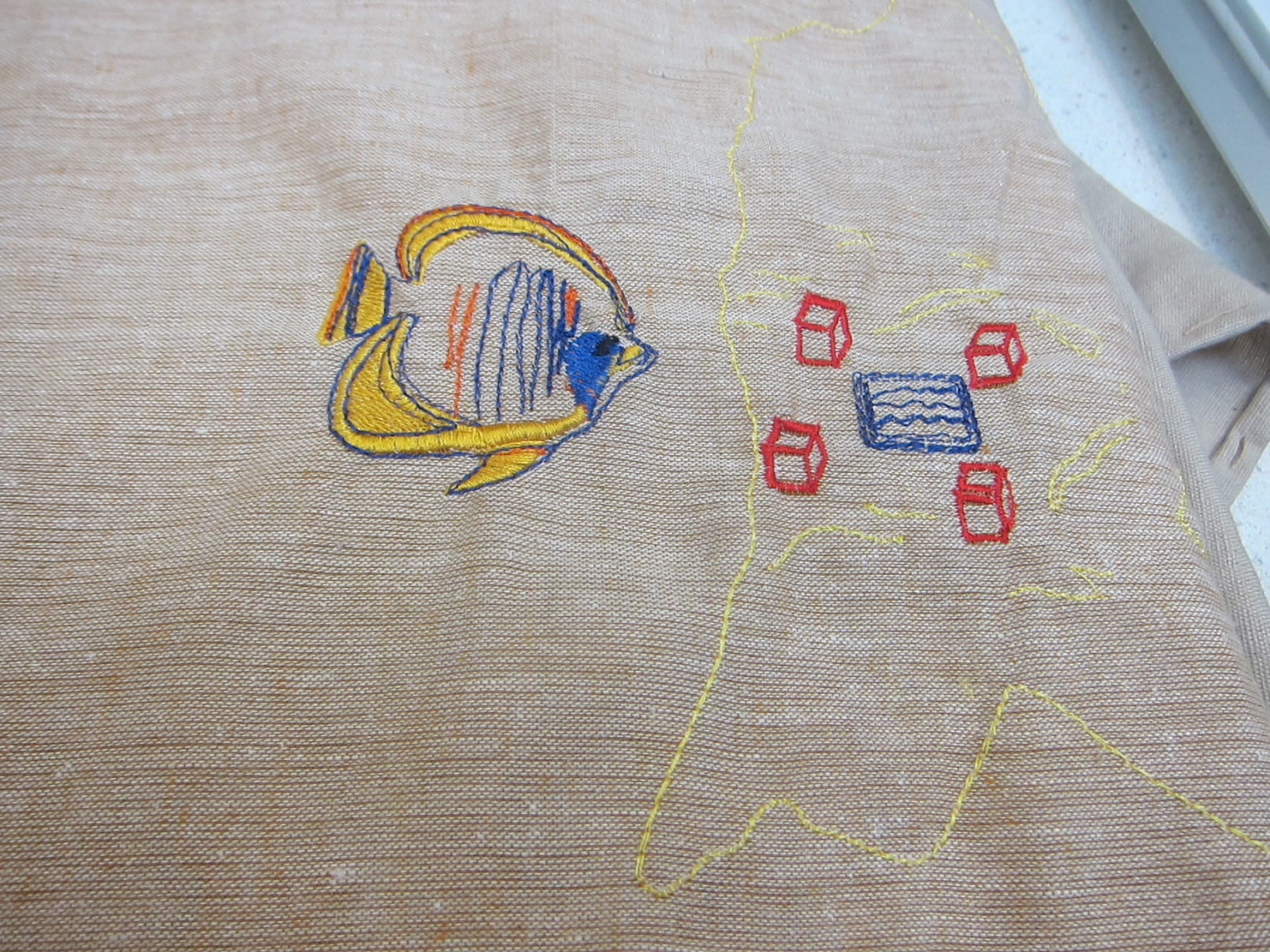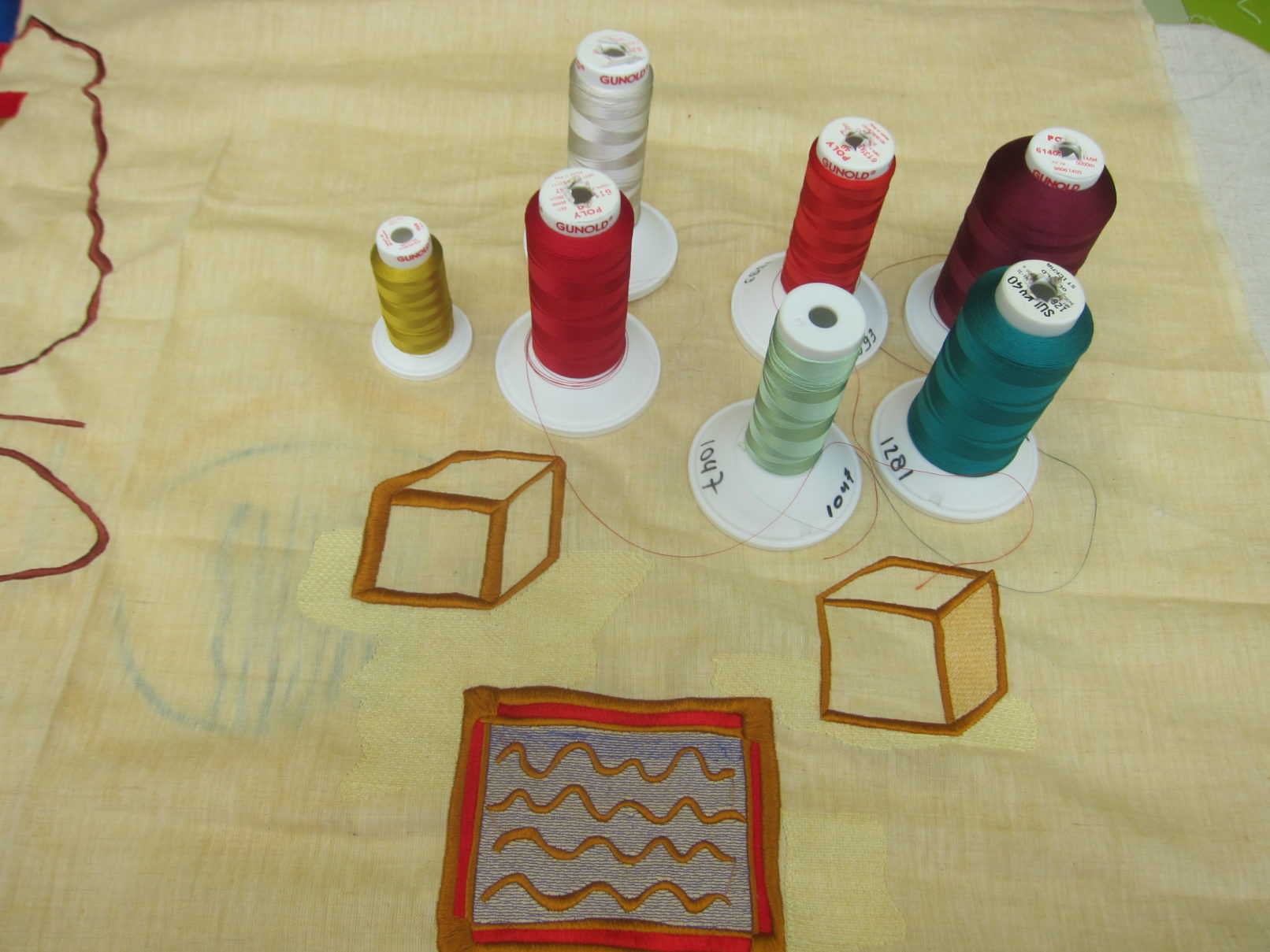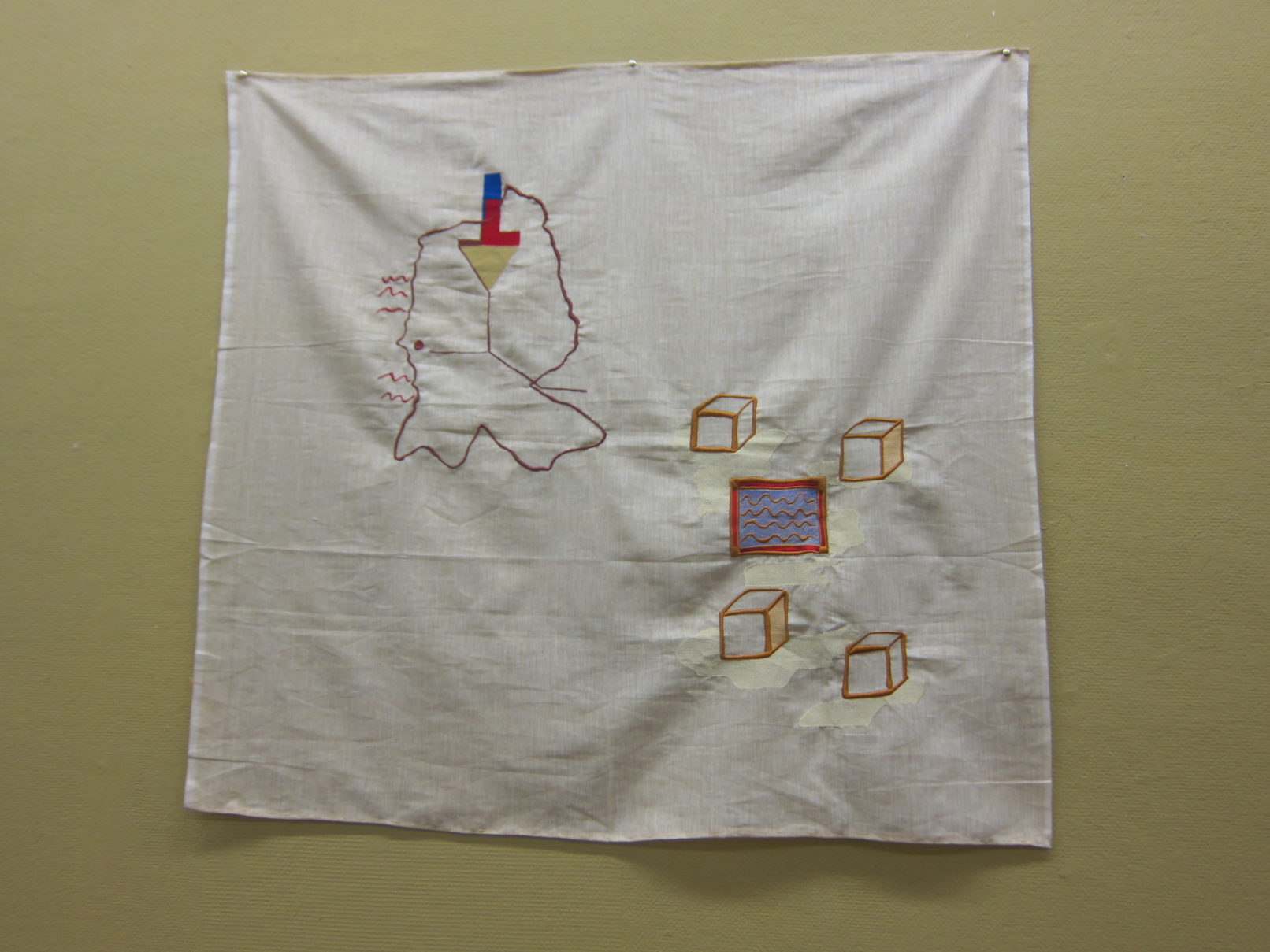 The work that came out of this process is a textile piece consisting of elements having each a different atmosphere through its imagery, colours and types of stitches.