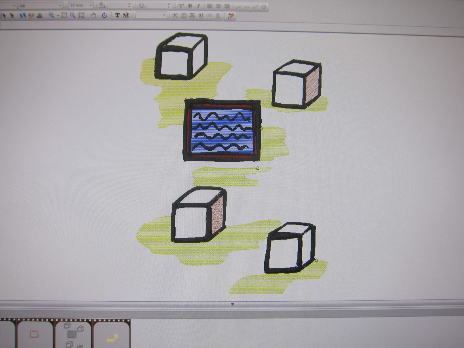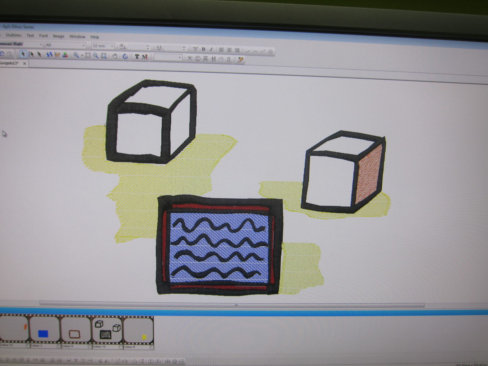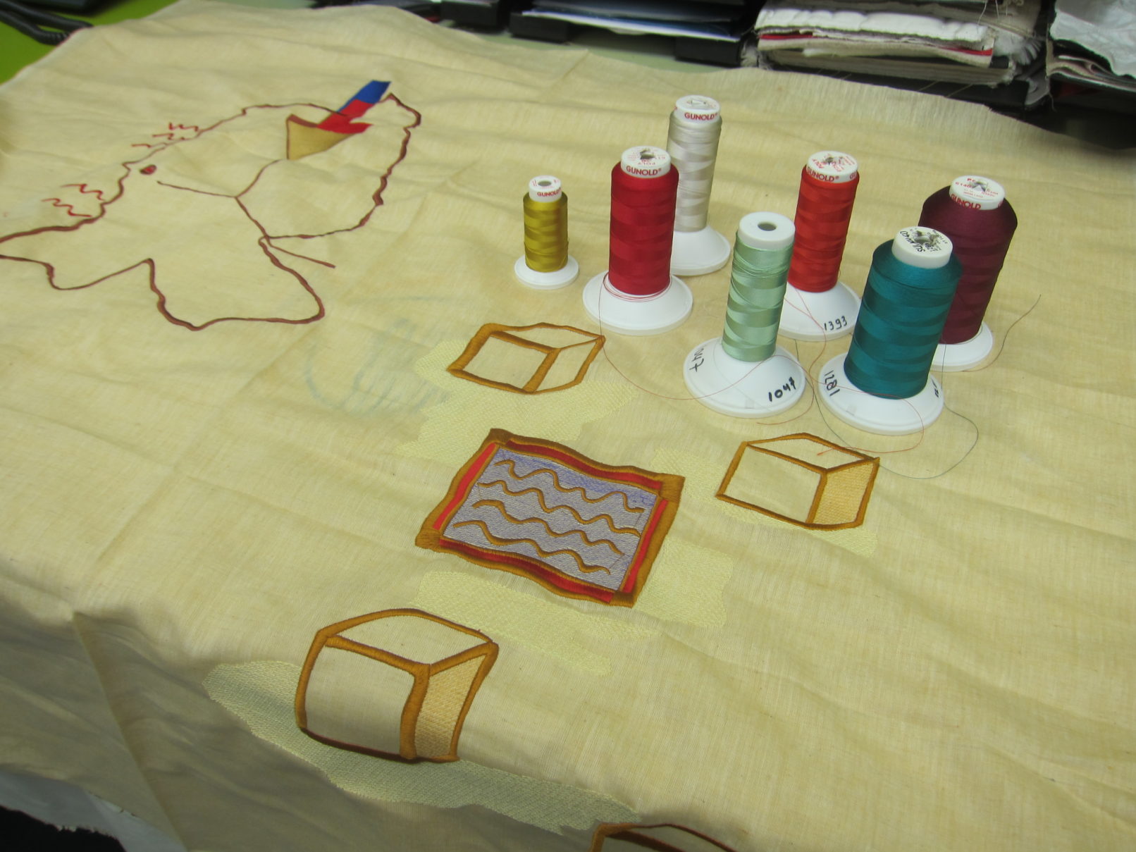 ‘Journal of Youthful Travels’ is the title of the project I made in collaboration with the textile lab in Tilburg. The project consists of a series of machine-made embroideries based on my chilhood experiences living in countries like Saudi-Arabia, Taiwan and Poland. Each work consists of my own interpretation of the geographical space and the memory of the place I lived in. In the textile-lab in Tilbug, I worked together with Frank de Wind to transform my sketches into embroideries on the machine.